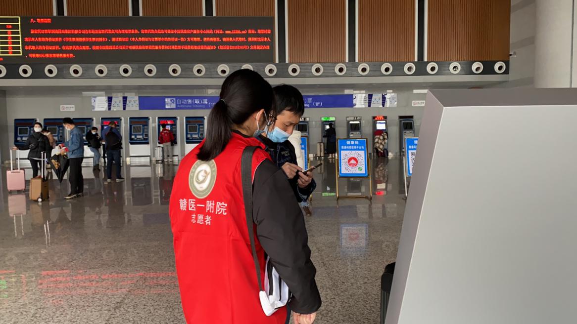 第一临床医学院青年志愿者来到赣州市火车站、高铁站、飞机场协助工作人员为出行旅客开展健康扫码、防疫知识宣讲等学雷锋志愿服务活动。
