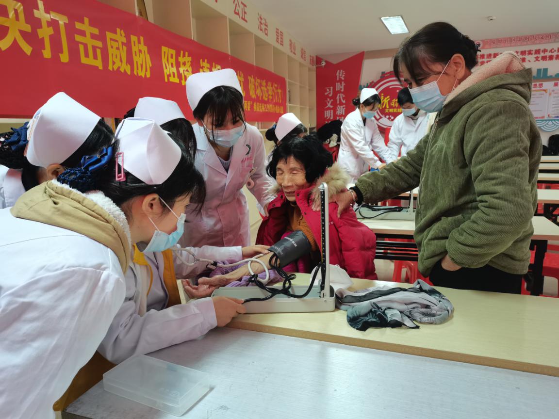 护理学院青年志愿者走进下壕塘社区开展学雷锋义诊暨急救知识进社区活动,活动中志愿者们向社区居民讲解了成人及婴儿的心肺复苏操作、海姆立克急救法以及高血压等常见病的预防应对方法,同时为社区的老年人开展血压测量等健康评估活动。