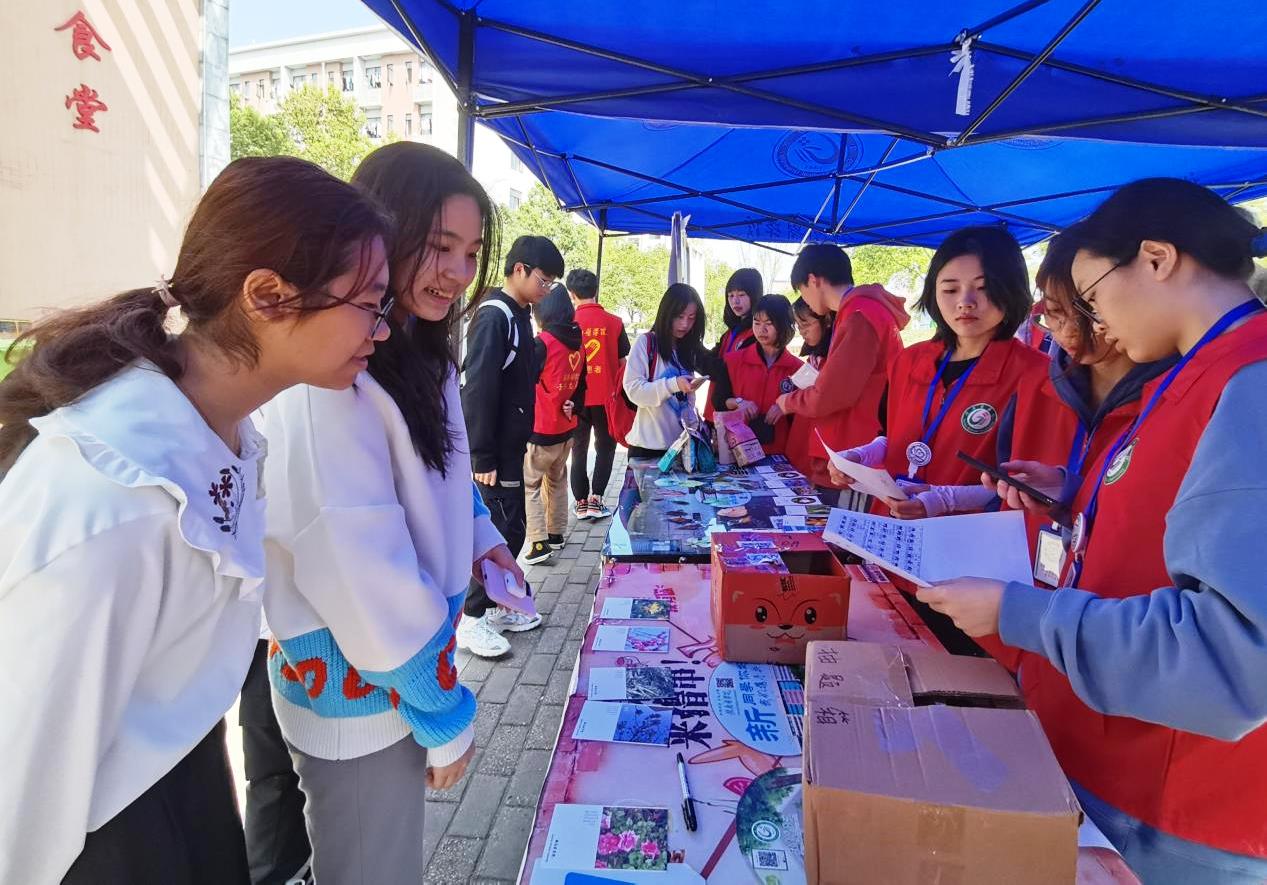 3月12日,志愿者分时段在一食堂门口摆摊设点。向全校师生介绍植树节、蚂蚁森林“云种树”公益活动等,并呼吁大家在承诺墙上签名。