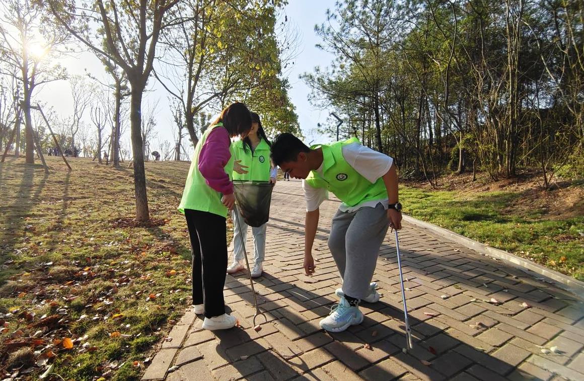活动分“护绿行动”和植树节志愿活动两个部分。在“护绿行动”中,志愿者在西园清扫路边的垃圾和落叶、维护图书馆周围环境卫生并劝导师生不要踩踏草坪。在植树节志愿活动中,志愿者在校园部分植物上系上丝带,邀请同学们找到丝带并拍照打卡,打卡成功后为他们发放自制的落叶书签等小礼品。志愿者通过这种互动性强的趣味线下科普形式,帮助同学们了解赣医校园的生态多样性,提高同学们的环保意识。