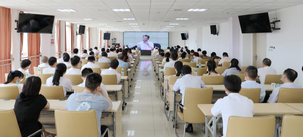 专题党课以视频形式举行,学校黄金校区综合楼多功能厅设主会场,黄金校区图书馆学术报告厅、章贡校区、第一附属医院和第三附属医院设置分会场,在家校领导、机关处级干部、师生代表共1000余人一起聆听了专题党课。